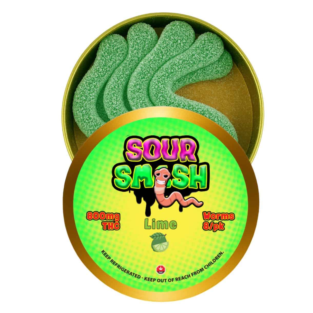 Discover the thrill of Sour Smash Lime Worms – 800mg THC, a zingy and refreshing treat that delivers a punch of citrus flavor in every bite. These lime sour worm gummies are perfect for those who love a tangy twist on their sweets. Affordable and potent, these edibles offer a unique experience that combines the delightful taste of sour candy with the effects of cannabis.